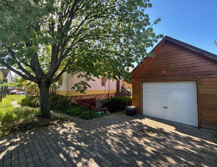 A 930 m2-es telek rendezett, gondozott, számos szép növénnyel beültetett, ideális pihenésre vagy akár kertészkedésre is. Parkolás garázsban megoldott.