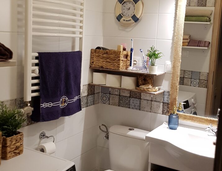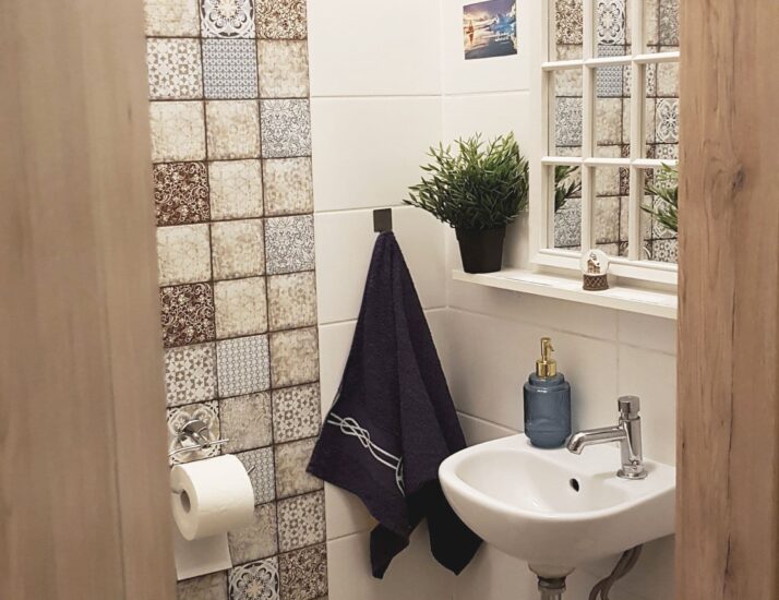 A fürdőszobában kényelmes kád, kézmosó, wc és törölközőszárító kapott helyet, emellett külön vendég wc is rendelkezésre áll.