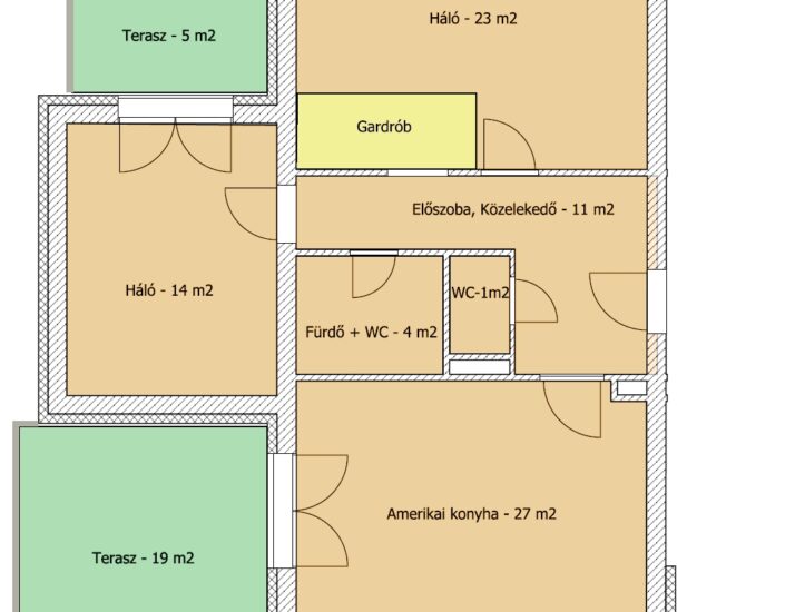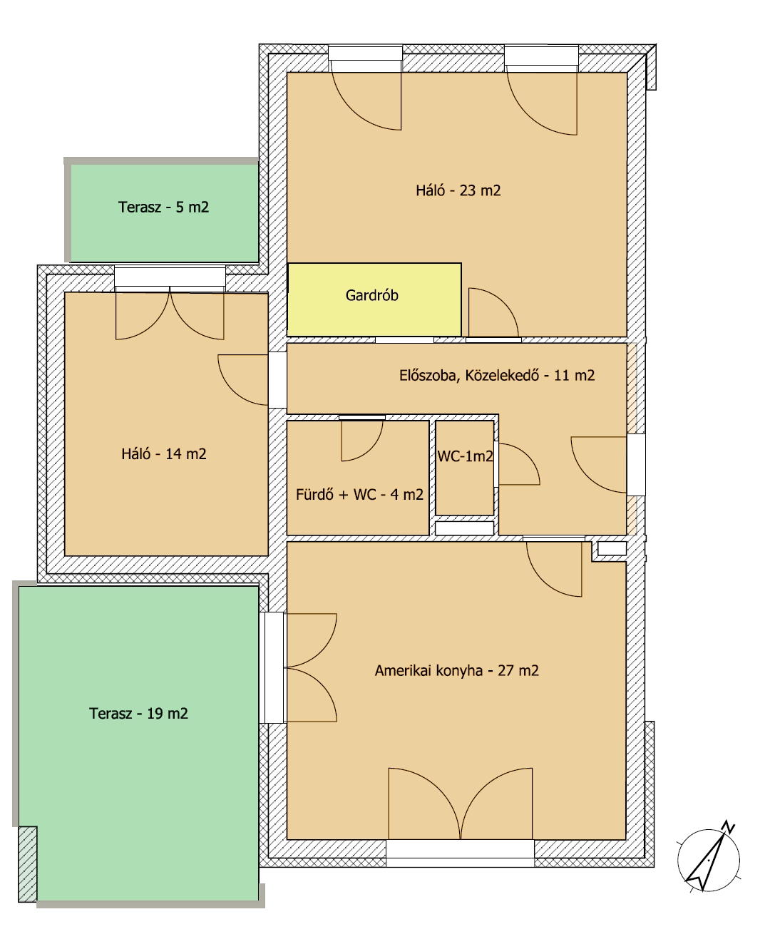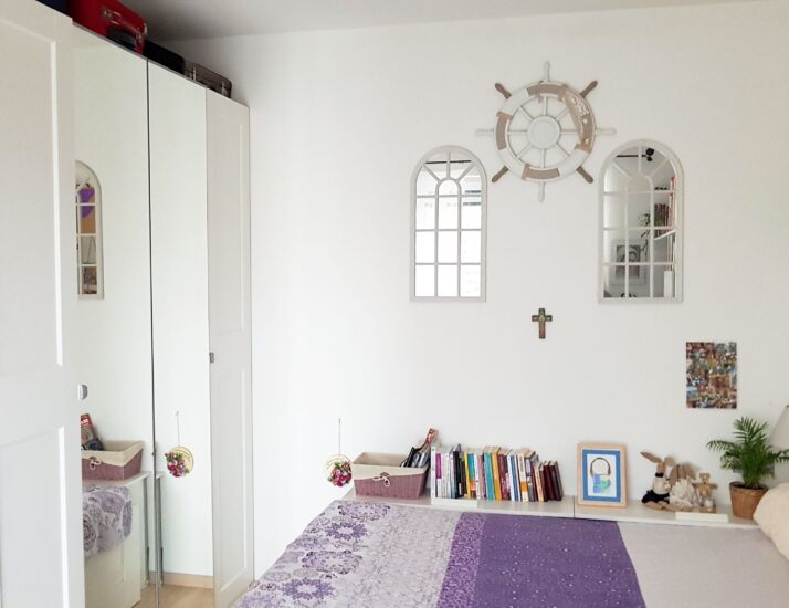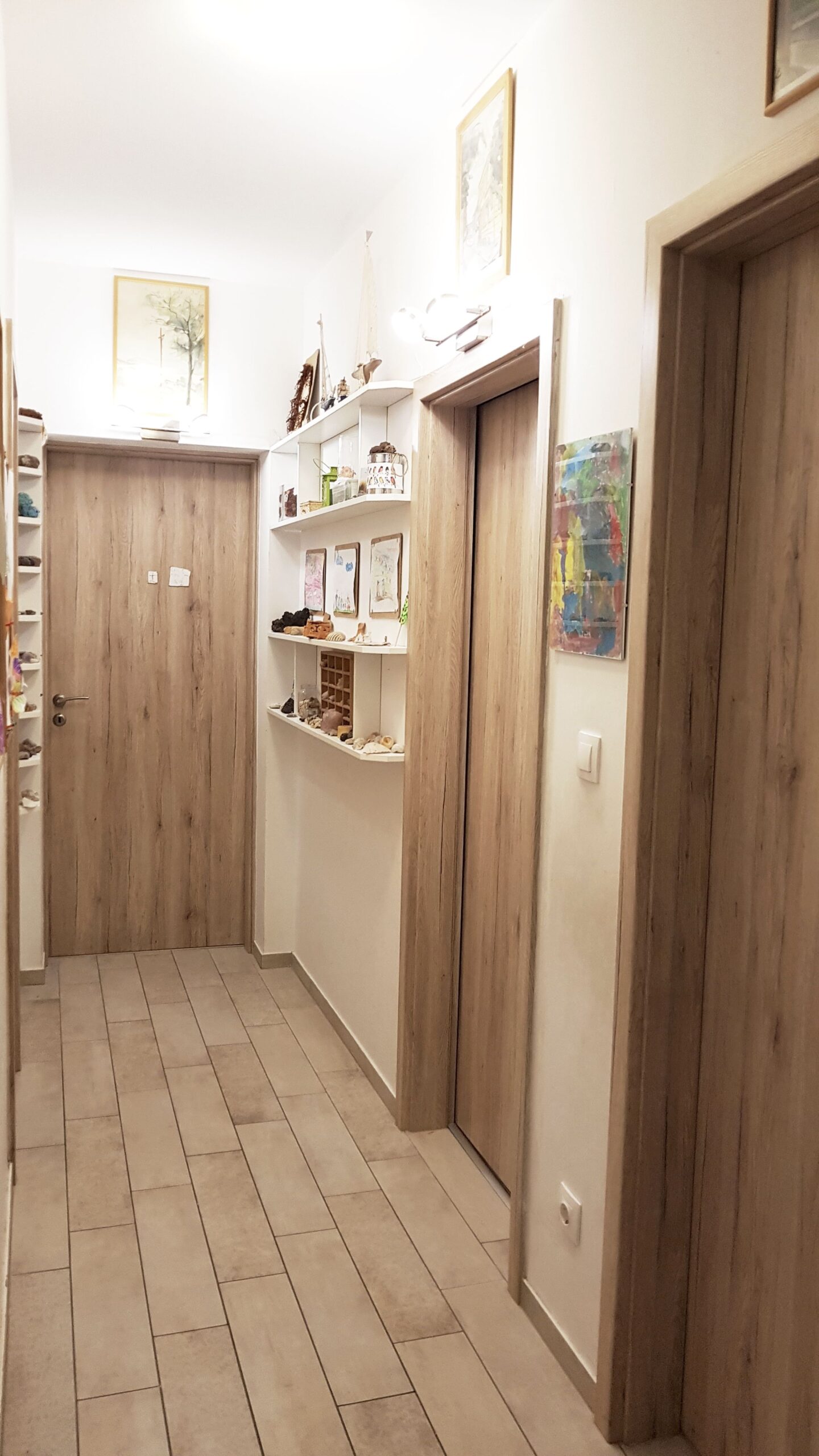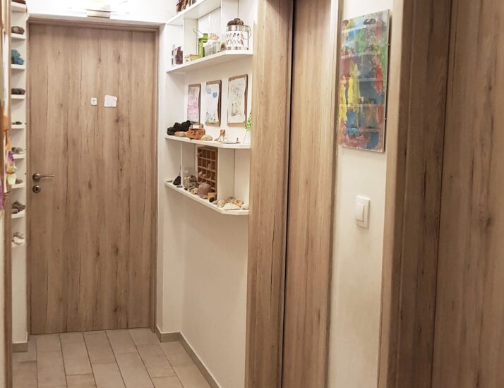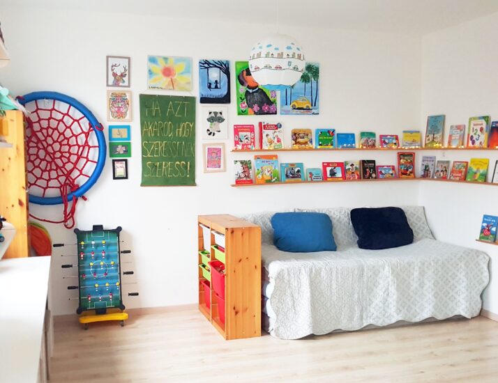 A jelenlegi 23 m²-es gyerekszoba kis átalakítással – a gardrób megszüntetésével – két külön bejáratú szobává alakítható, így akár nagyobb család számára is ideális választás lehet. Itt valóban mindenkinek lehet saját szobája.