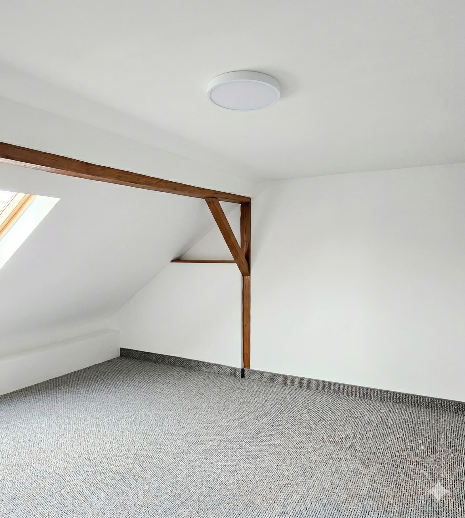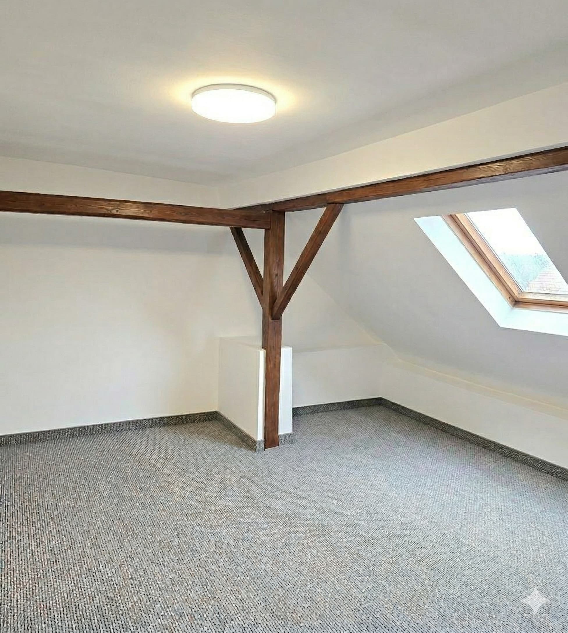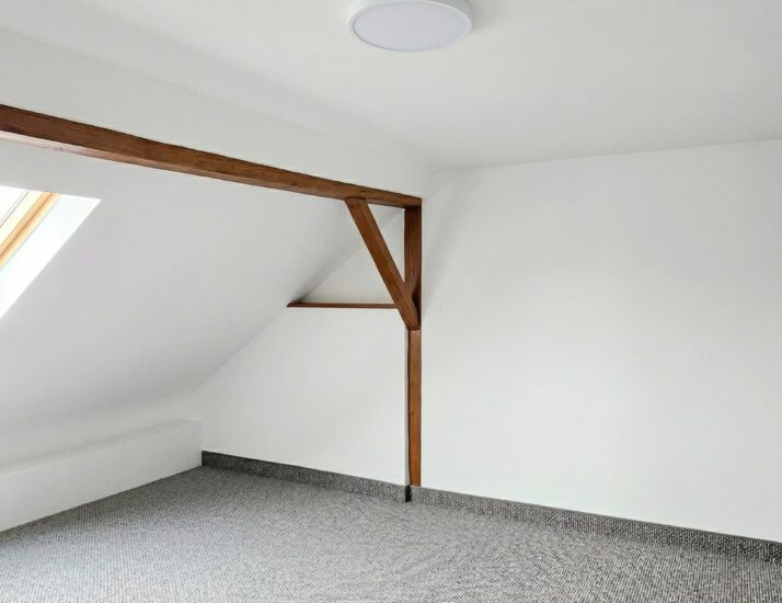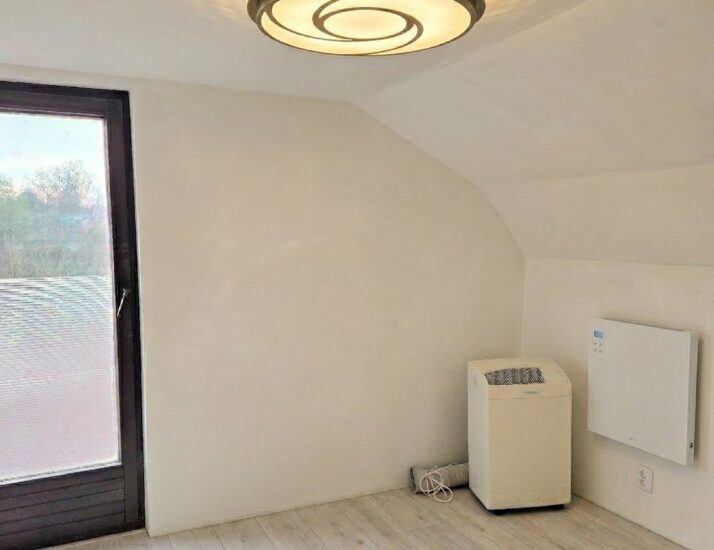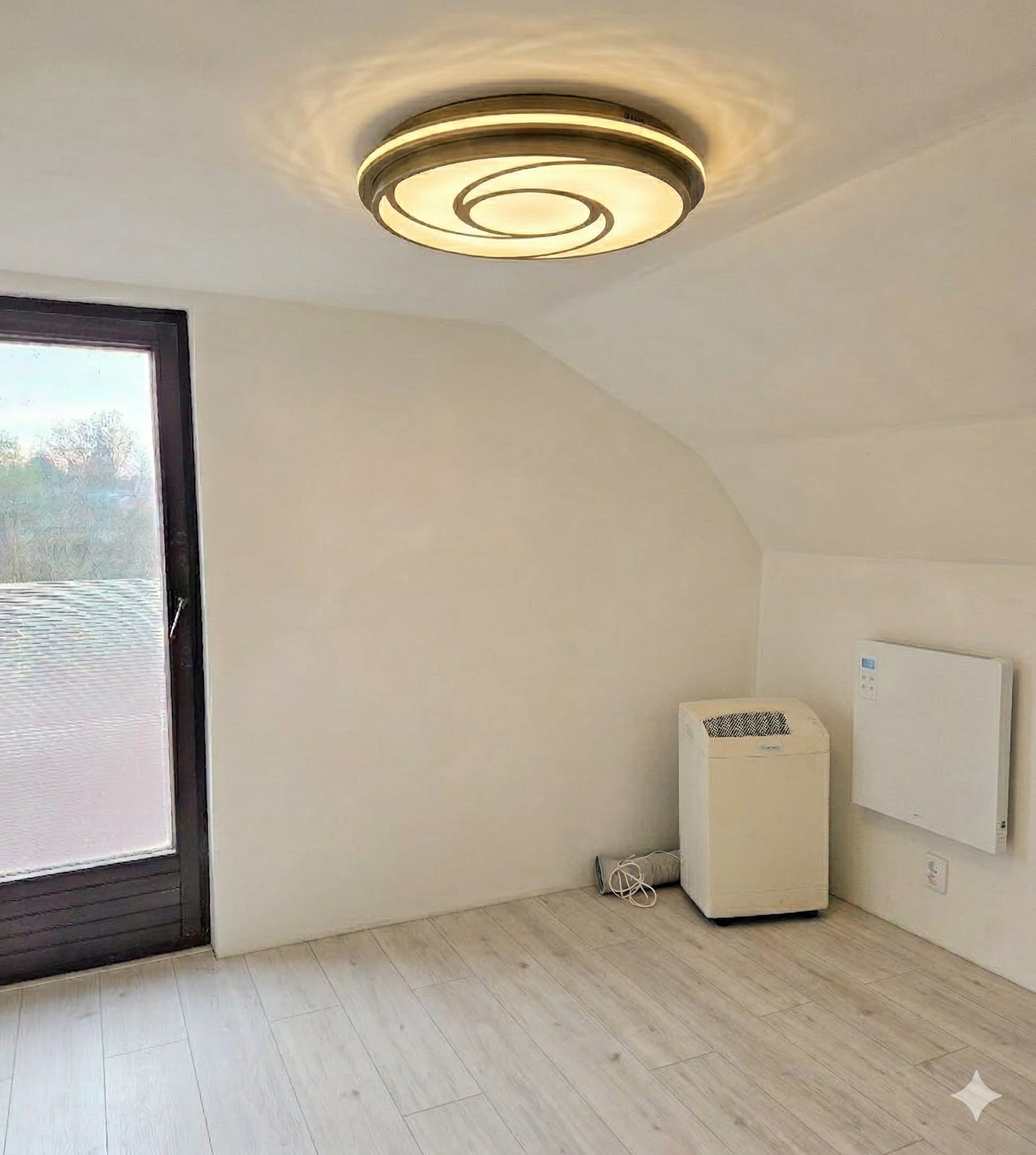 A tetőtér mindössze két éve készült el, új szerkezettel, megemelt falakkal és korszerű, háromrétegű nyílászárókkal – világos, élhető tereket teremtve.