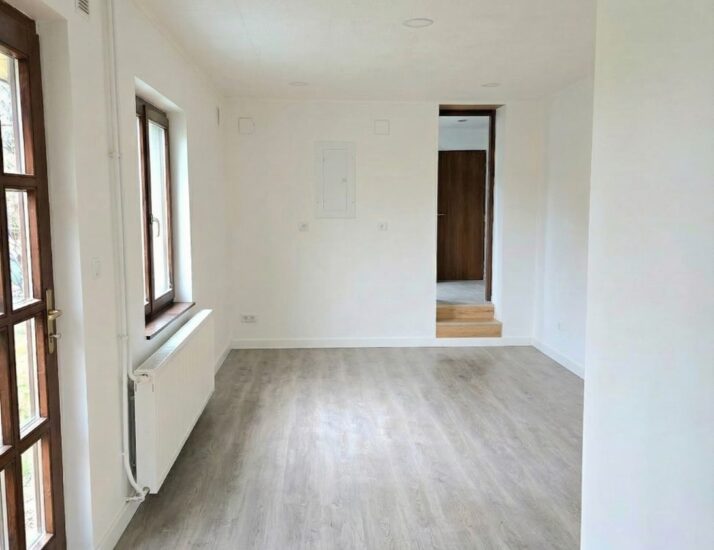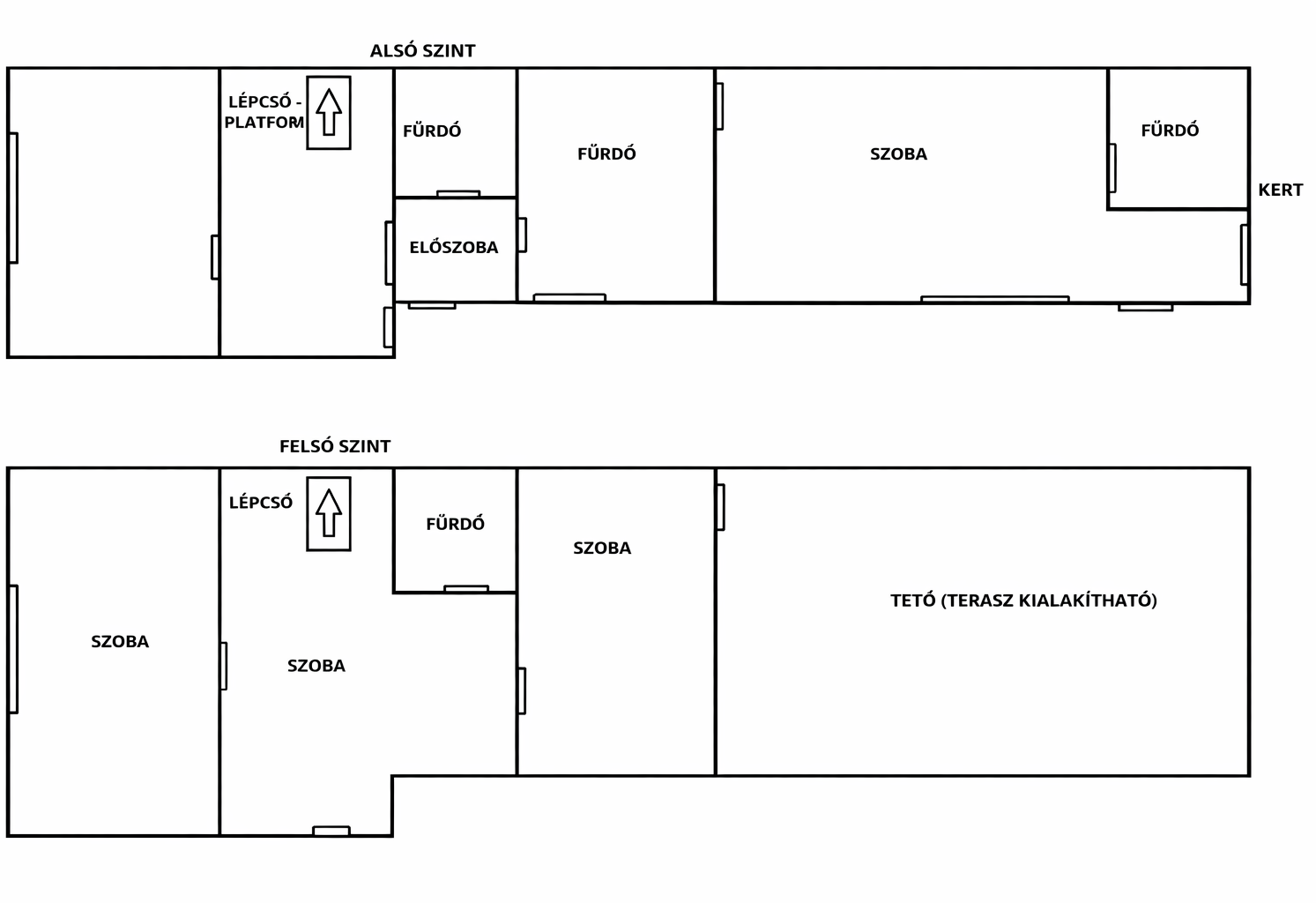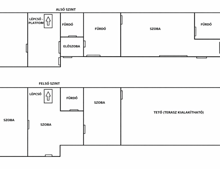 A földszinten két szoba, egy tágas nappali, konyha, előszoba és két fürdőszoba kapott helyet – ideális akár nagyobb család számára is.