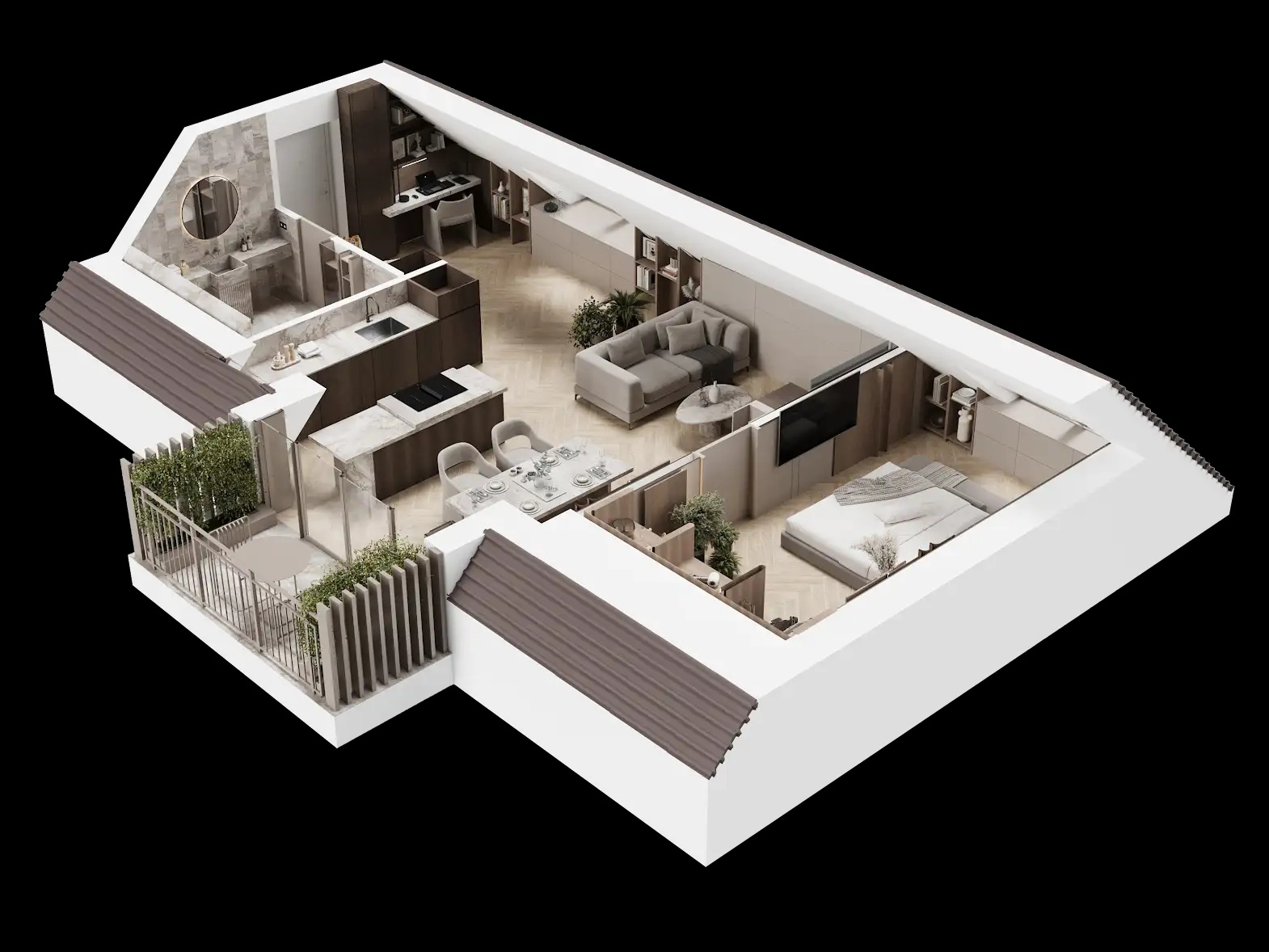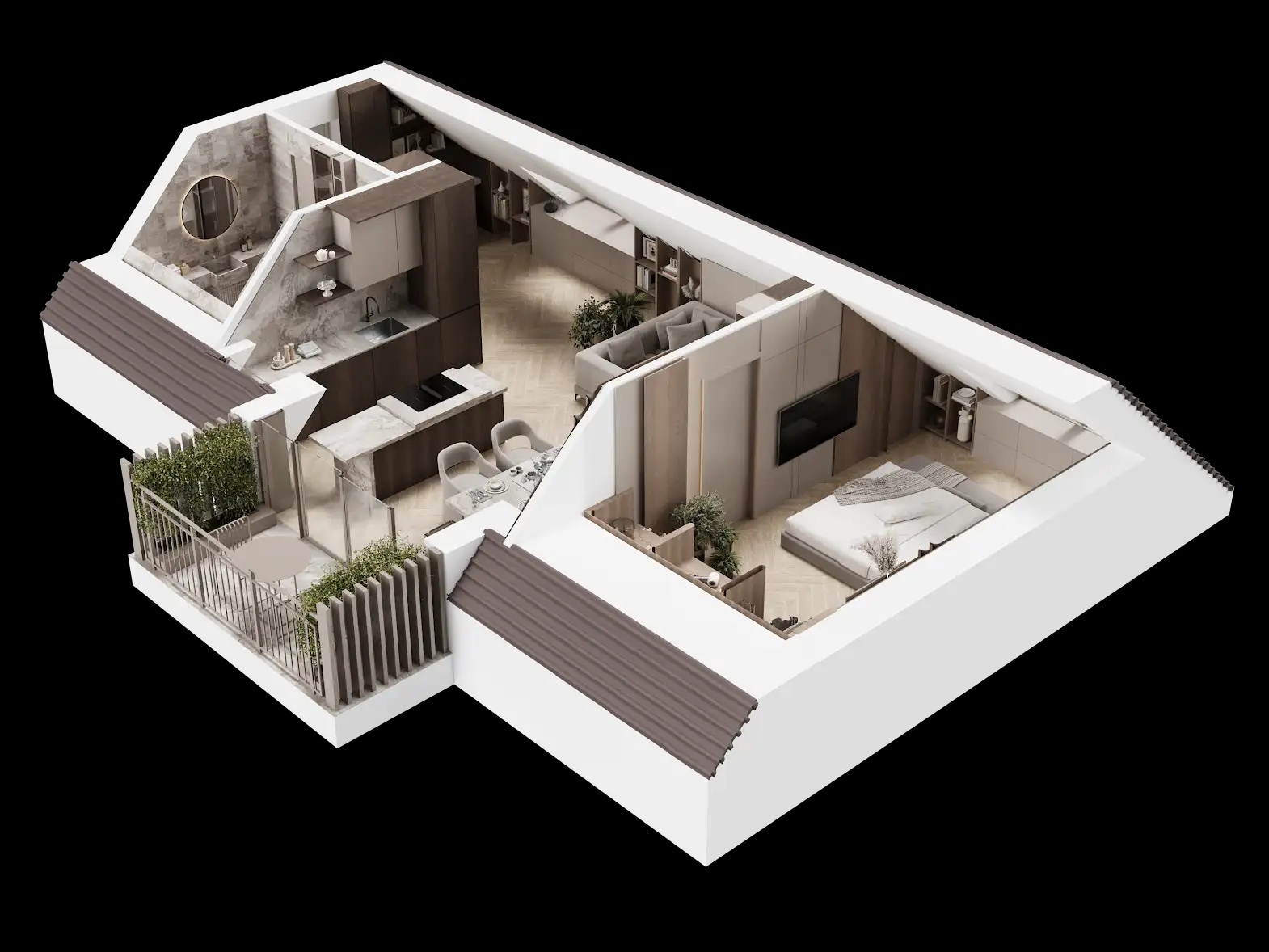 Ennek a második emeleti lakásnak különleges előnye, hogy nincs fölötte lakószint, így teljesen zavartalan és intim környezetet biztosít. A lakás egy kényelmes hálószobával és amerikai konyhás nappalival rendelkezik, valamint egy 5,55 m²-es terasszal, amely ideális hely a reggeli kávéhoz, esti pihenéshez vagy a friss levegő élvezetéhez.