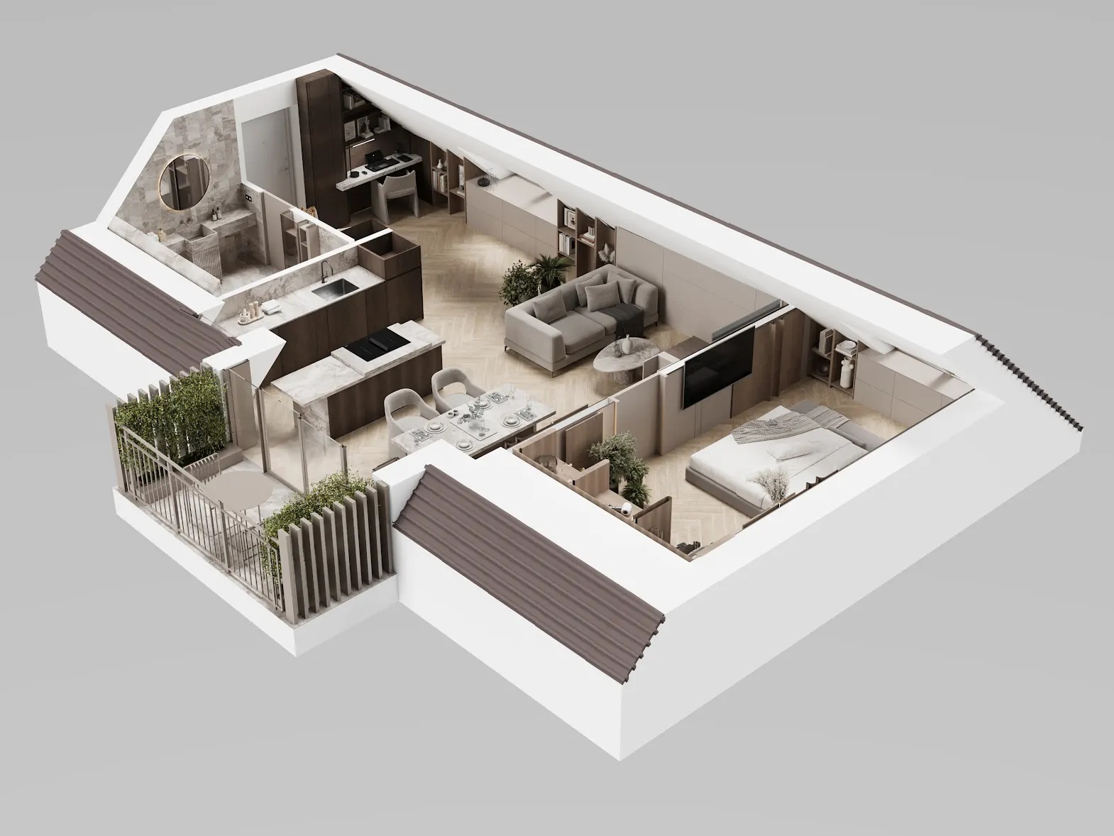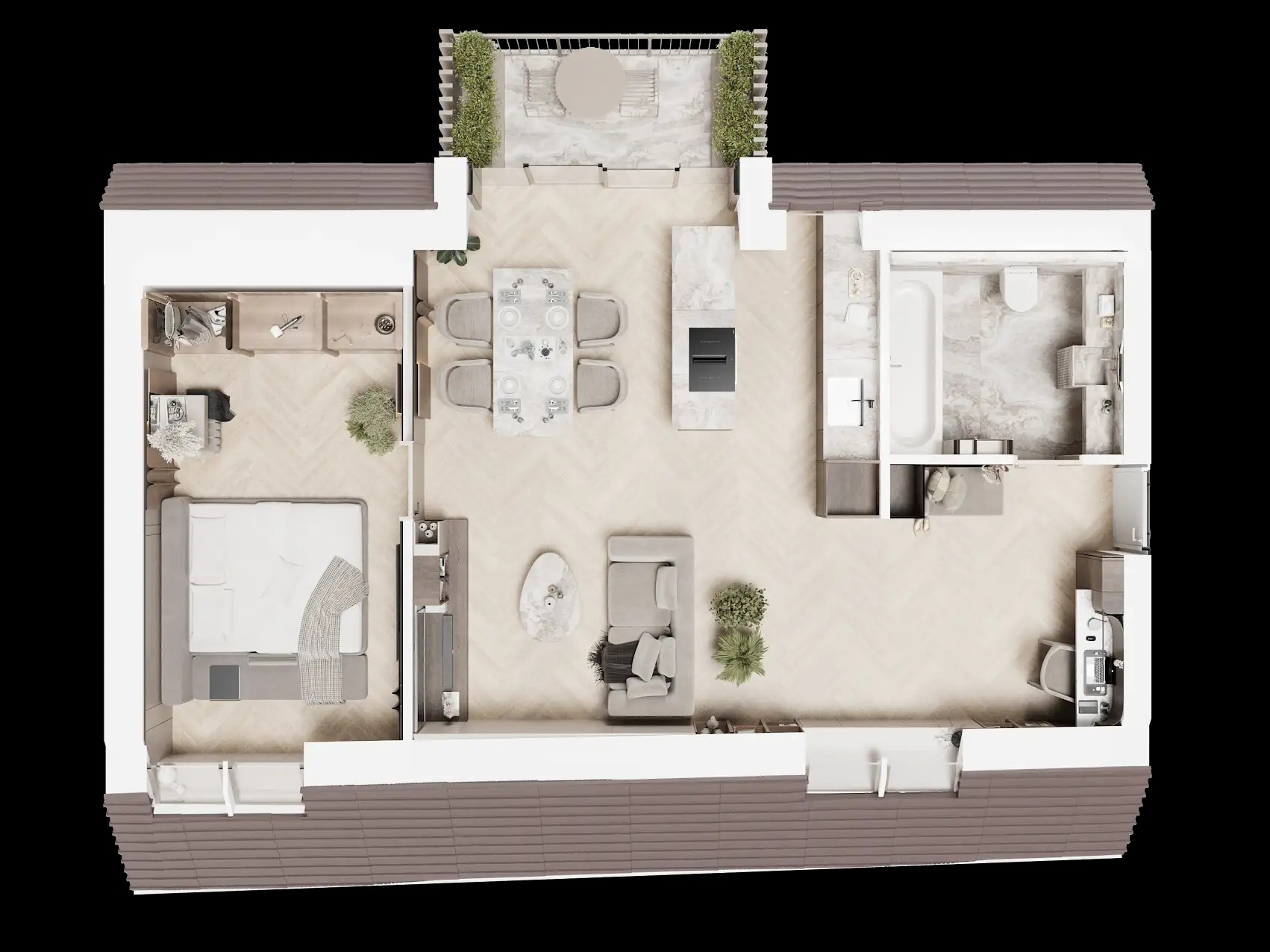 Az ingatlan tökéletes választás azoknak, akik nyugodt, világos és praktikus otthont keresnek, ahol a modern amerikai konyhás nappali és a tágas hálószoba kényelme, valamint a terasz biztosítja a belső nyugalmat.