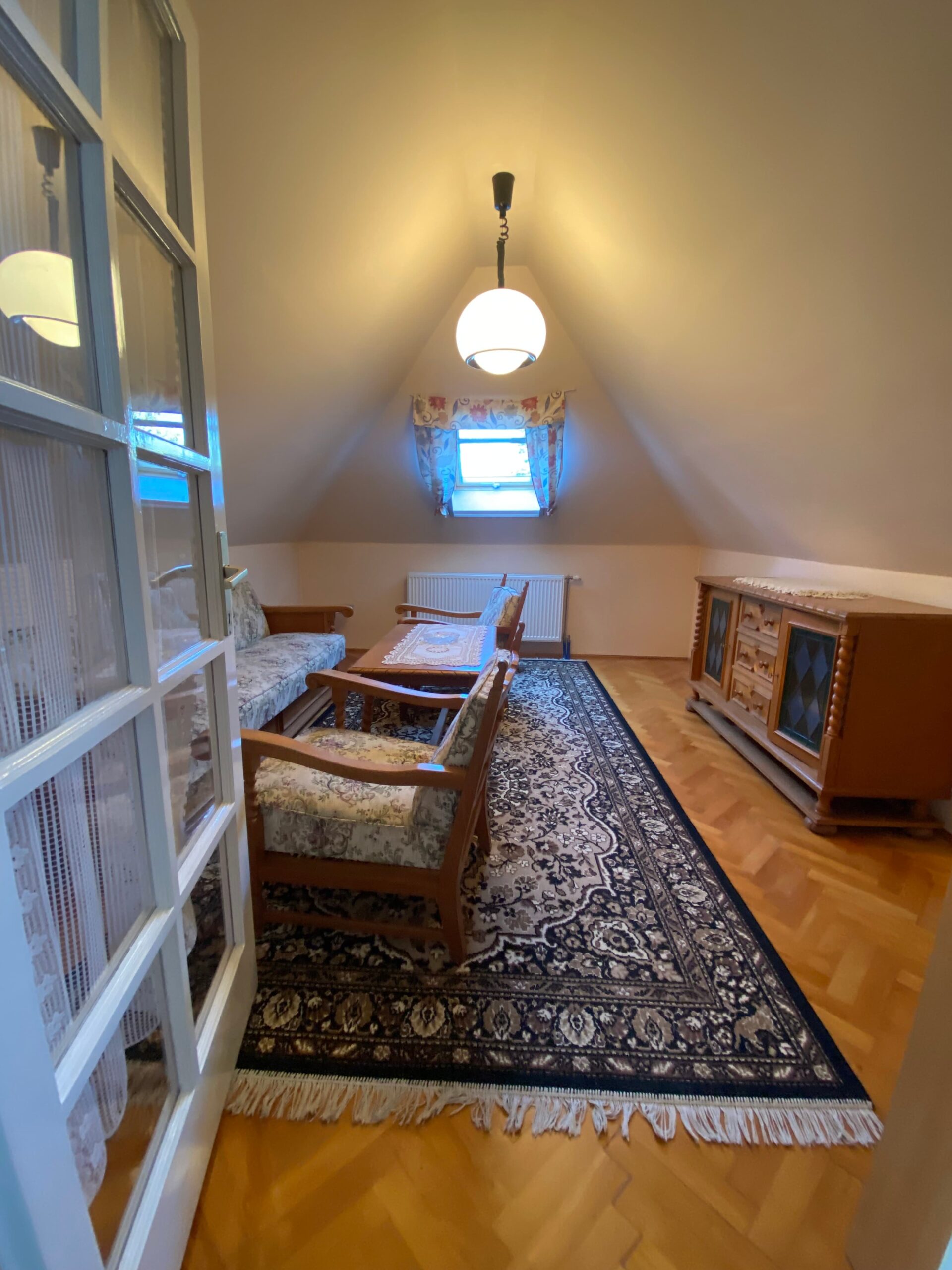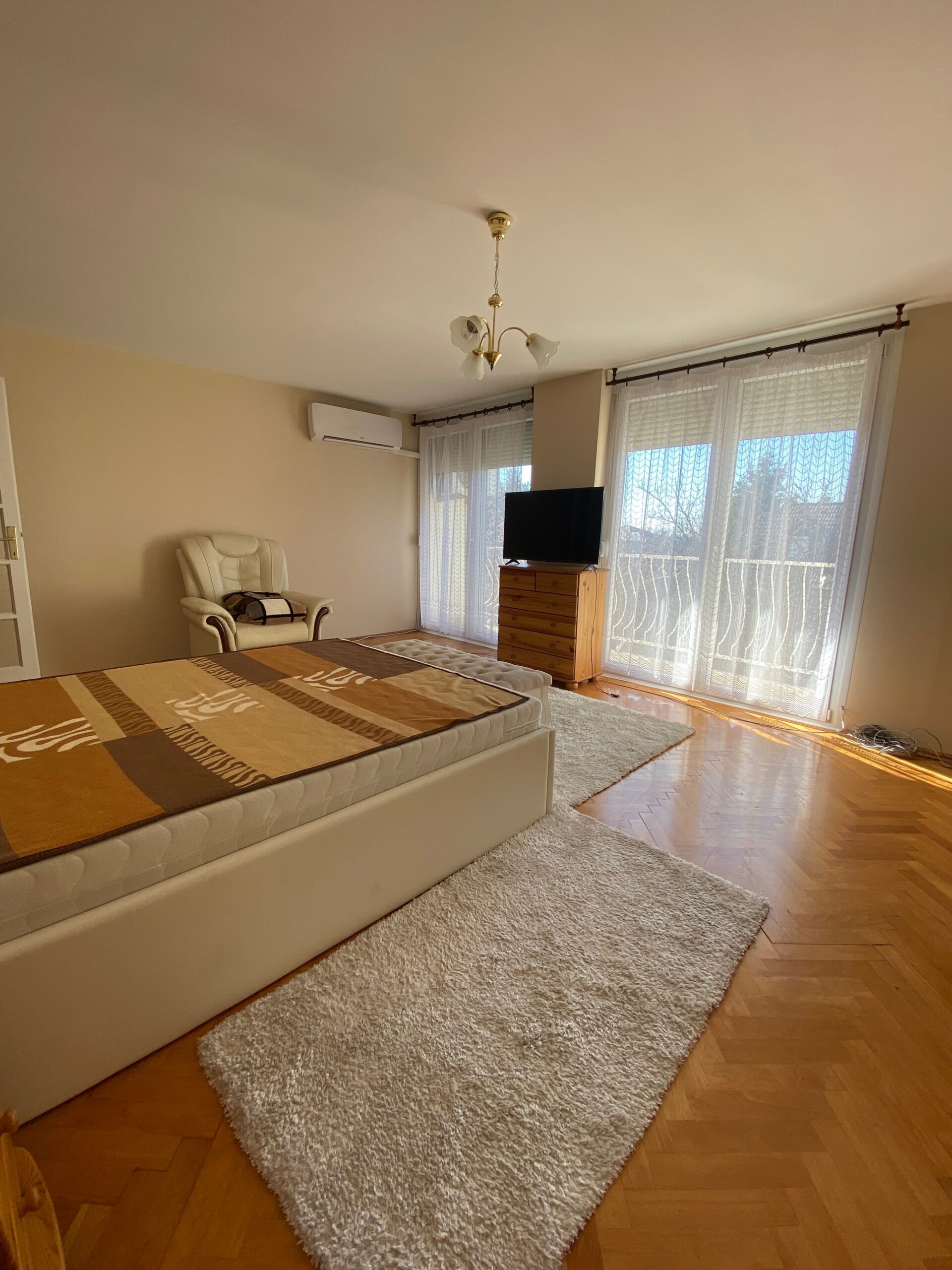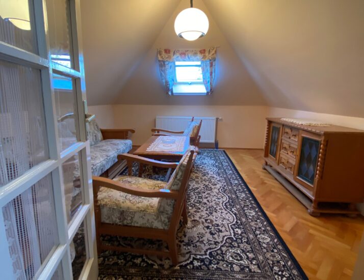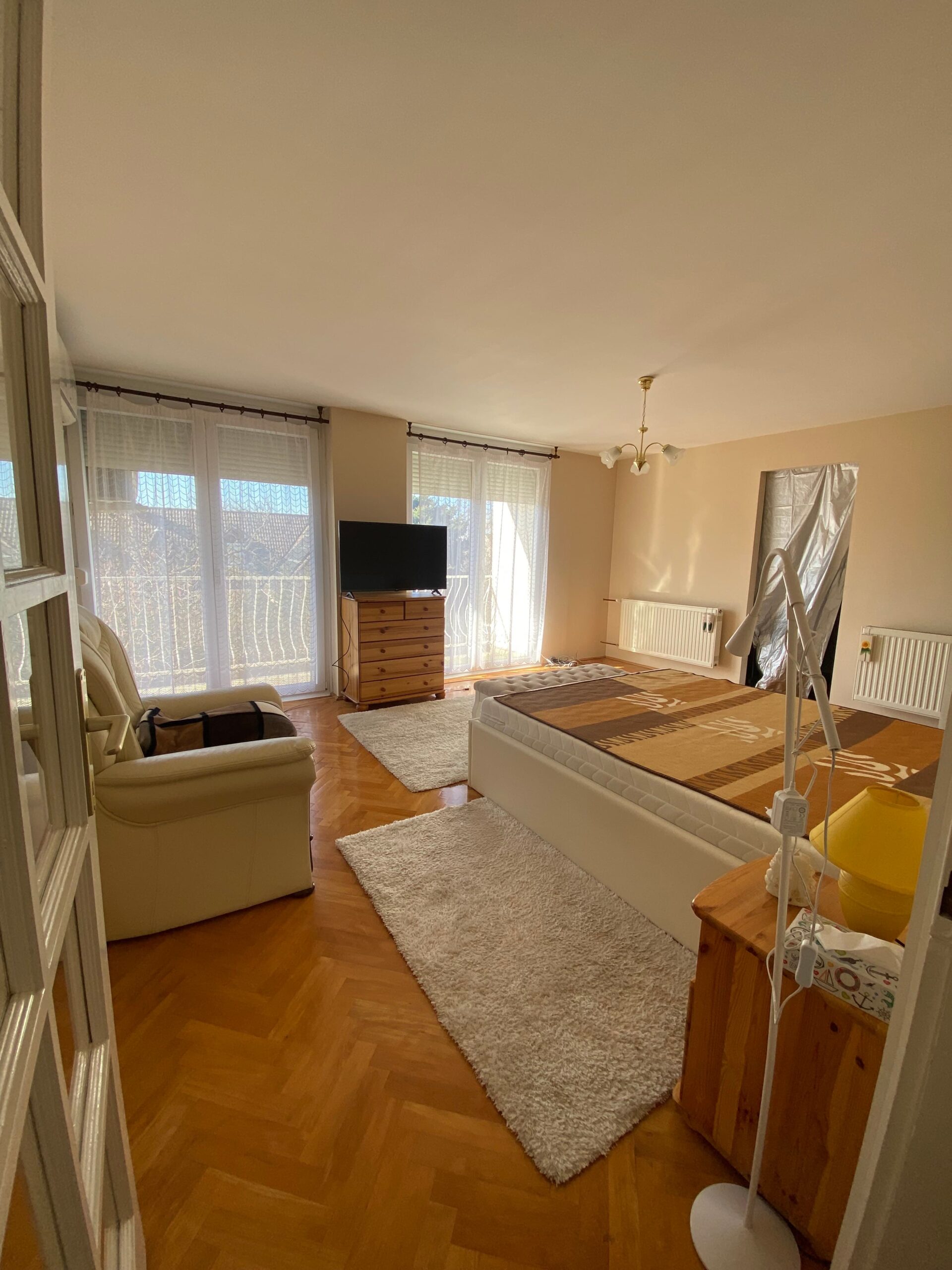 Az emeleti előszobából nyílik a tágas, erkélykapcsolatos fő hálószoba, amely gardróbbal is rendelkezik, így valódi privát lakrészként funkcionál. Emellett két további szoba, egy kádas fürdőszoba és külön WC szolgálja a család kényelmét.
