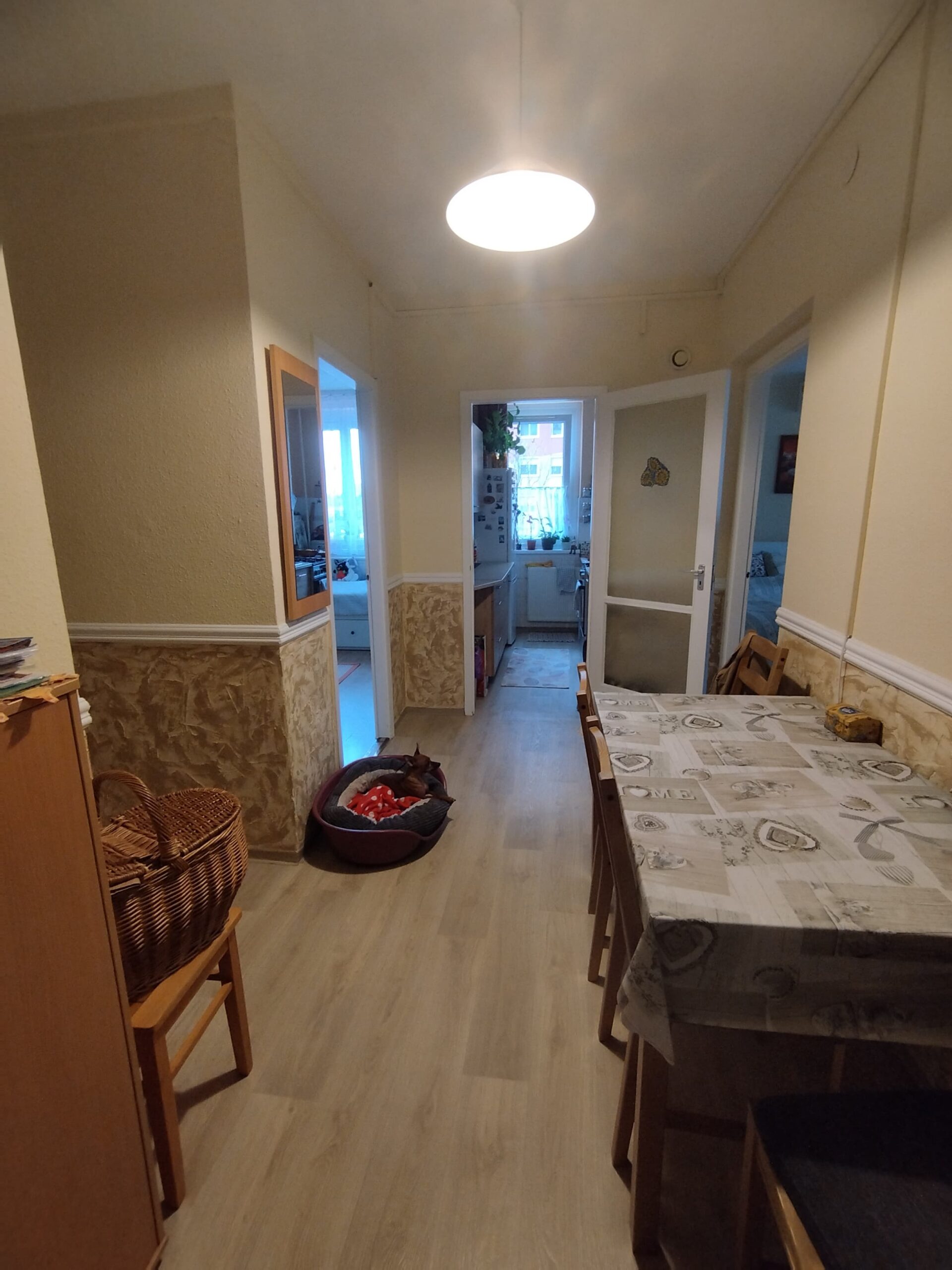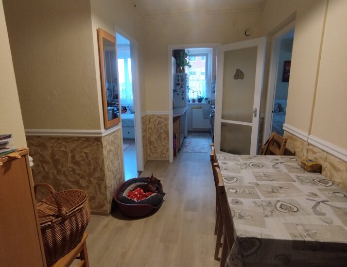 A lakás egy panelprogramon átesett, rendezett társasházban található, melynek során a nyílászárók cseréje is megtörtént. A fűtést házközponti rendszer biztosítja radiátoros hőleadással, a melegvíz ellátása szintén erről a rendszerről történik.