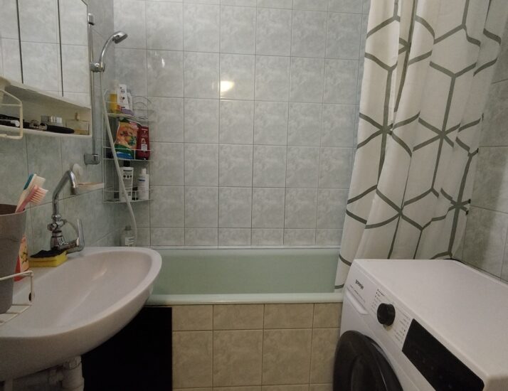 Az ingatlan D–DNy-i tájolásának köszönhetően a délutáni órákban kellemes, napfényes hangulatot áraszt, ami különösen barátságossá teszi a tereket. A praktikus elrendezés részeként a fürdőszoba és a mellékhelyiség külön helyiségben kapott helyet, ami a mindennapi kényelmet szolgálja.