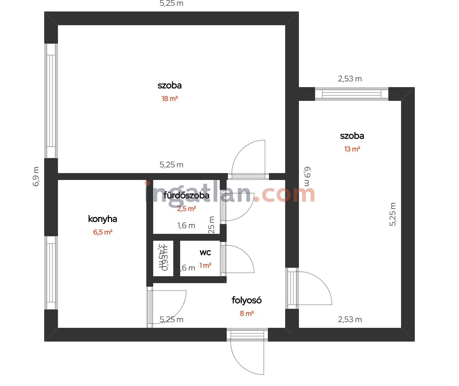 Lakás Alapterület: 49 m 2 Szobák száma: 2