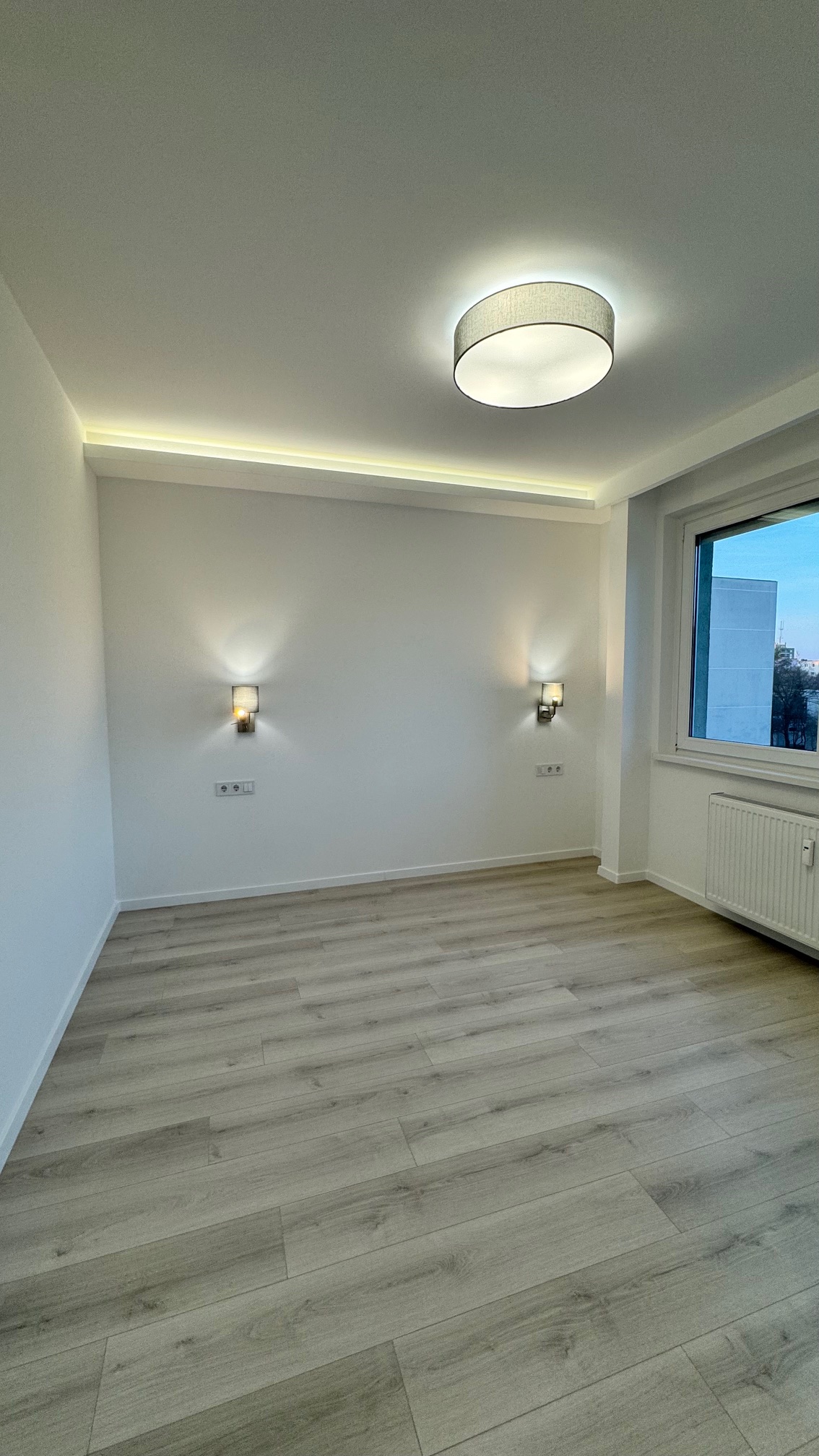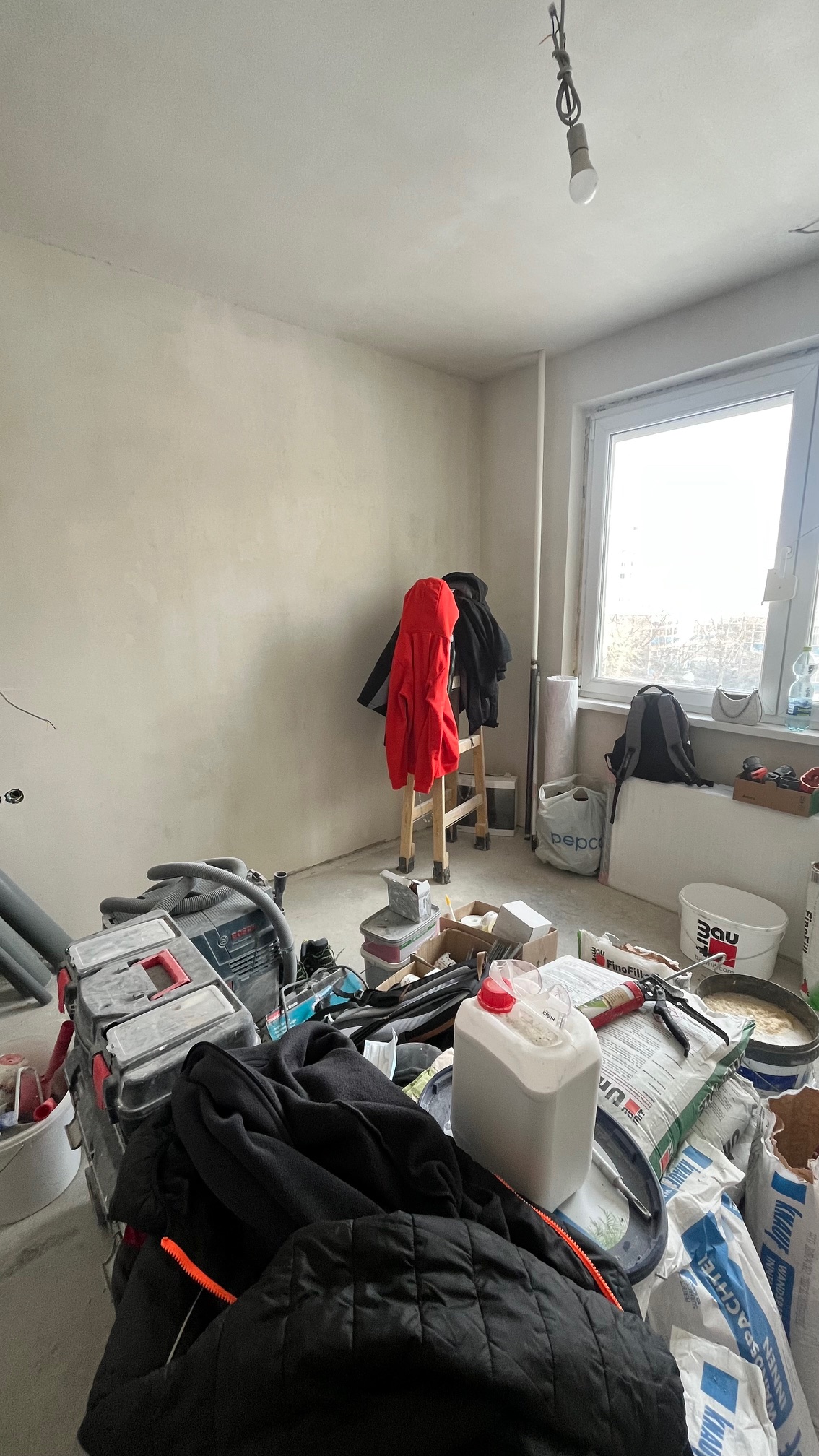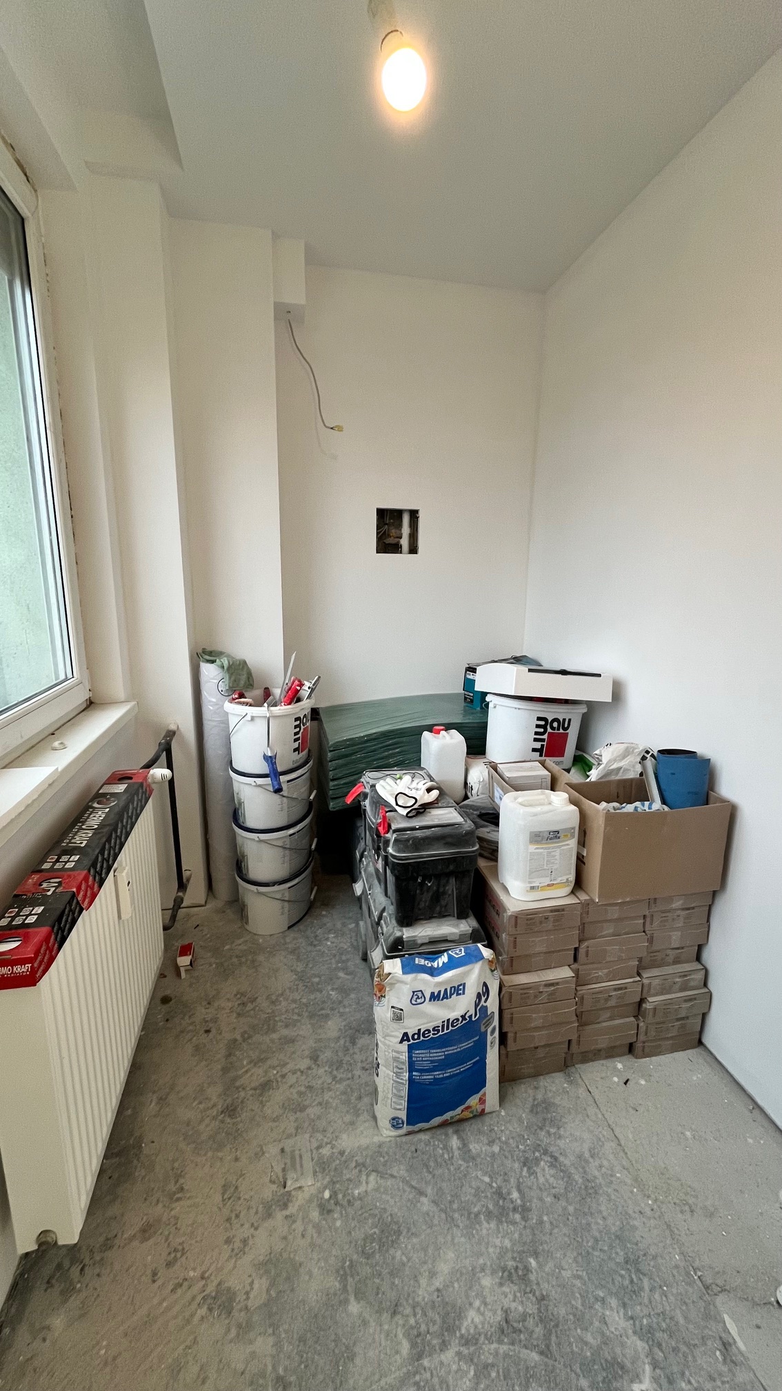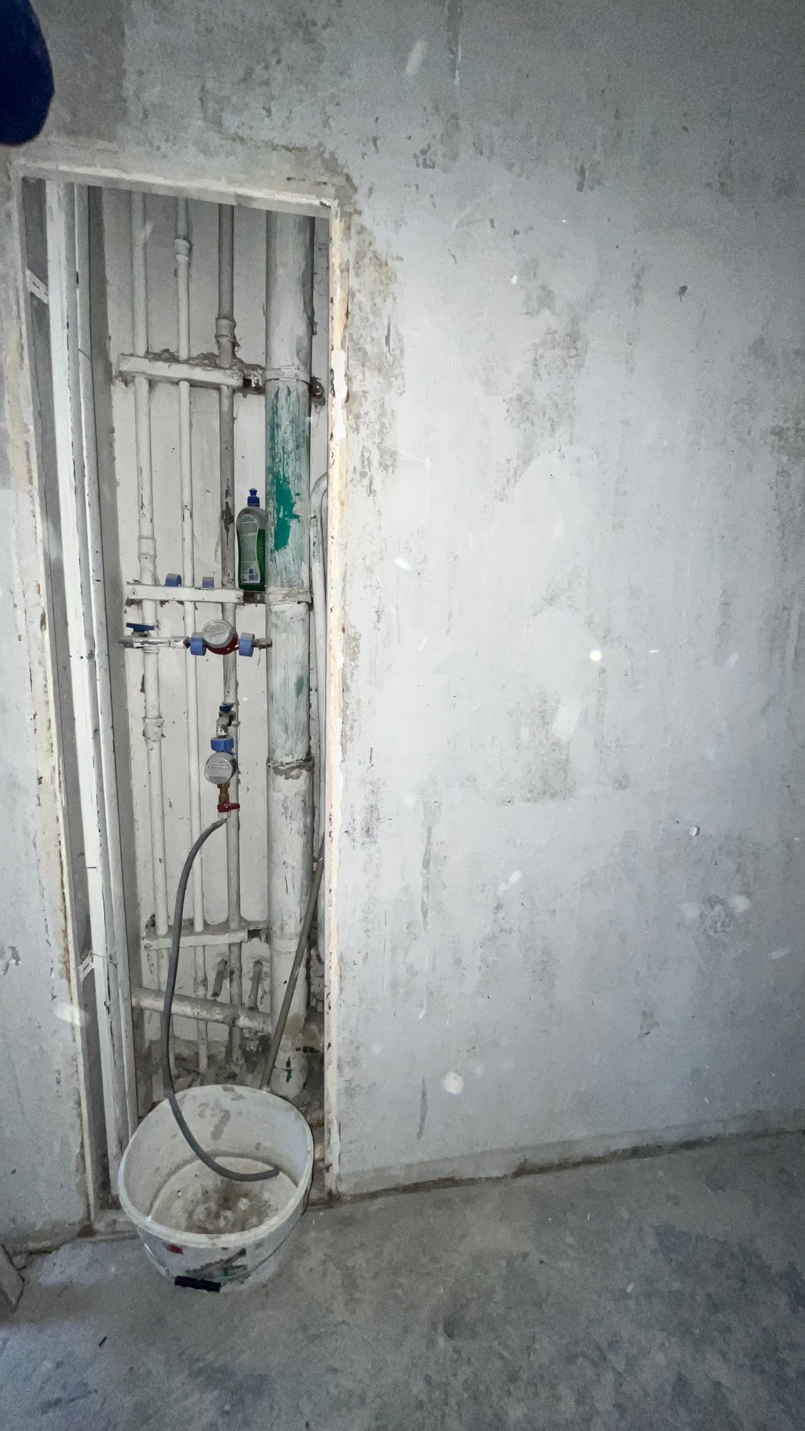 A felújítás valóban az alapoktól kezdődött. A régi burkolatok, falak és elavult vezetékek eltávolítása után a lakás szinte szerkezetkész állapotig visszabontva várta az újjáépítést. Teljesen új elektromos hálózat került kiépítésre 32 amperes teljesítménybővítéssel, így a nagyobb energiaigényű háztartási gépek egyidejű működtetése sem jelent problémát. A gépészeti rendszer is teljes korszerűsítésen esett át, a strang cseréjével együtt, ami hosszú távon is biztonságos és megbízható működést garantál.