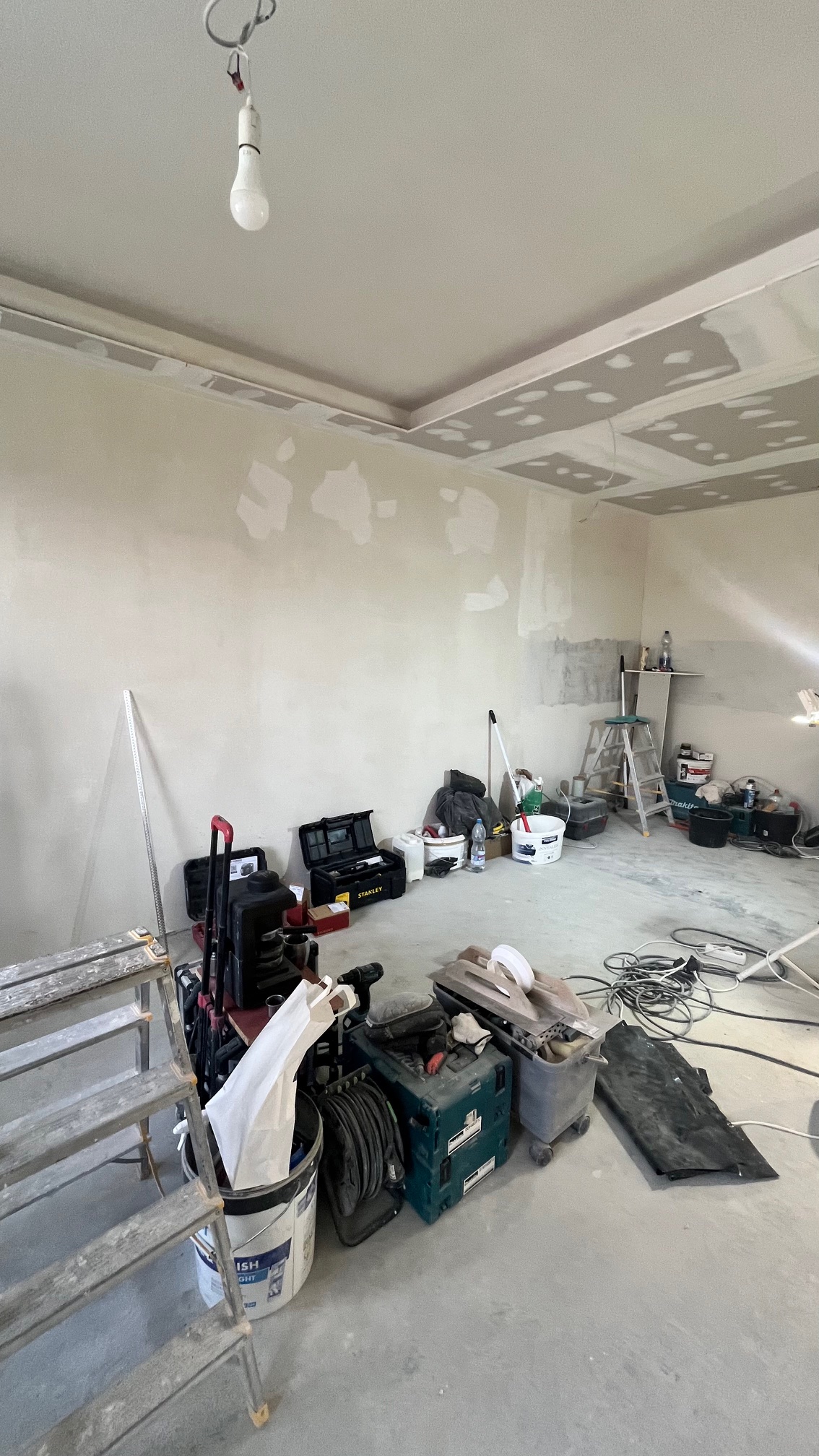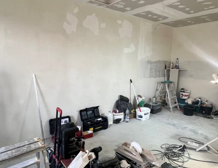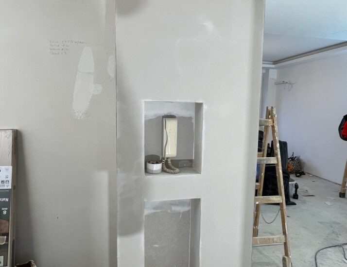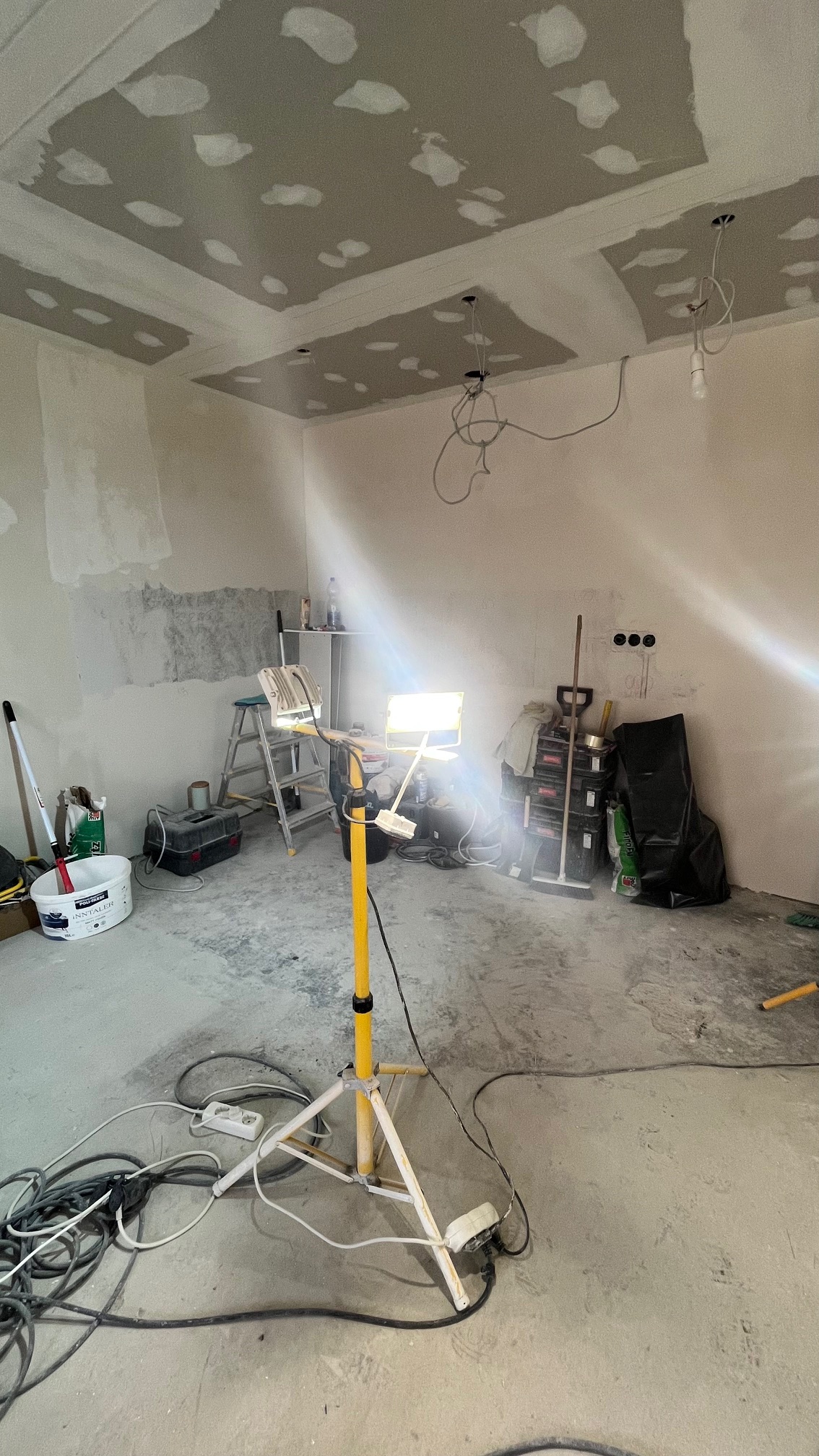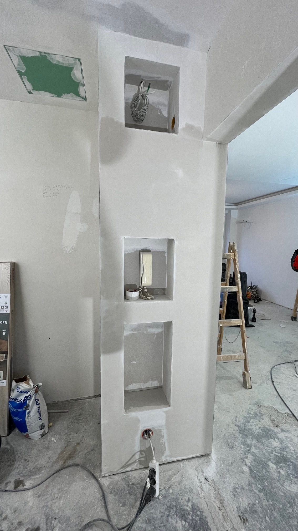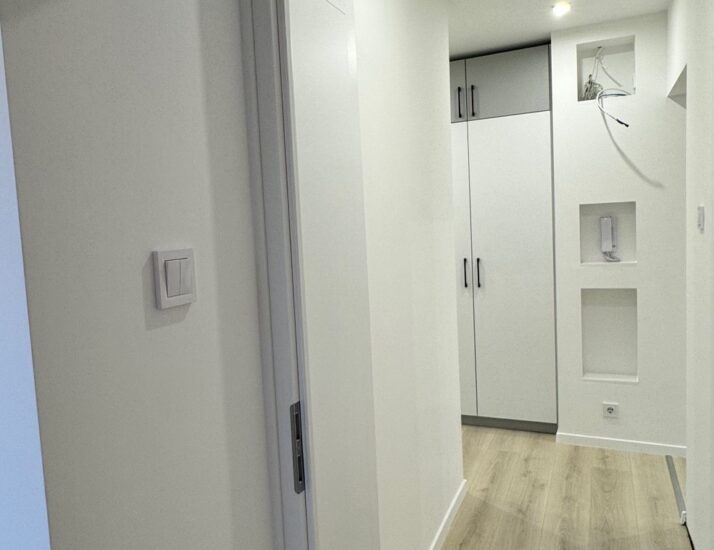 A felújítás valóban az alapoktól kezdődött. A régi burkolatok, falak és elavult vezetékek eltávolítása után a lakás szinte szerkezetkész állapotig visszabontva várta az újjáépítést. Teljesen új elektromos hálózat került kiépítésre 32 amperes teljesítménybővítéssel, így a nagyobb energiaigényű háztartási gépek egyidejű működtetése sem jelent problémát. A gépészeti rendszer is teljes korszerűsítésen esett át, a strang cseréjével együtt, ami hosszú távon is biztonságos és megbízható működést garantál.