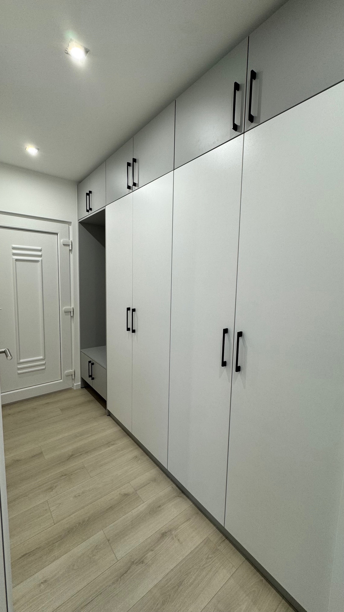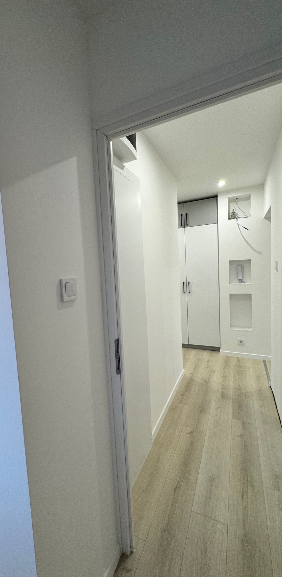 Az apró, átgondolt részletek jól mutatják, hogy a tervezés során a kényelem és praktikum egyaránt fontos szempont volt. A korábbi konyha helyén egy új, sokoldalúan hasznosítható szoba jött létre, amely lehet dolgozószoba, vendégtér vagy akár gardrób is – így a lakás rugalmasan alakítható a jövőbeni tulajdonos életviteléhez.